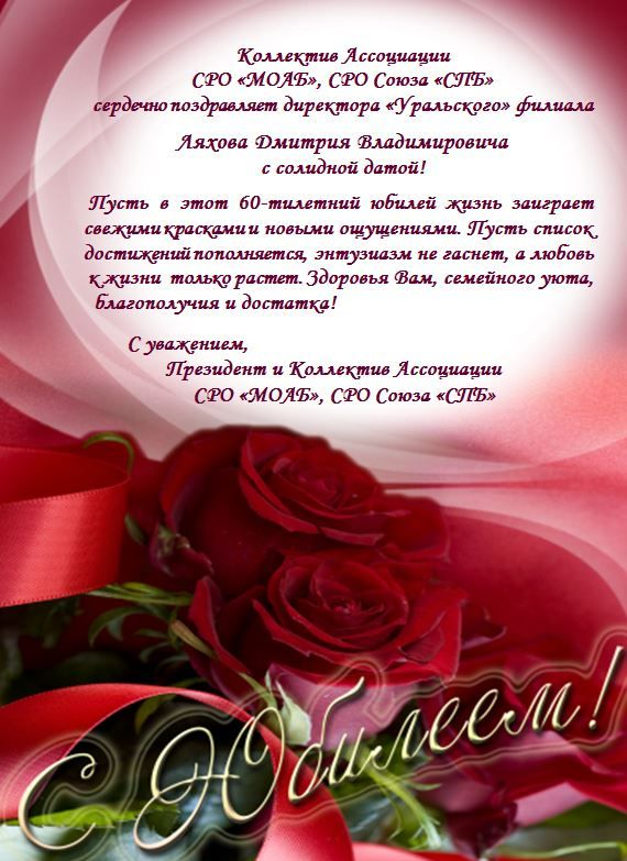 Поздравляем с юбилеем Ляхова Дмитрия владимировича