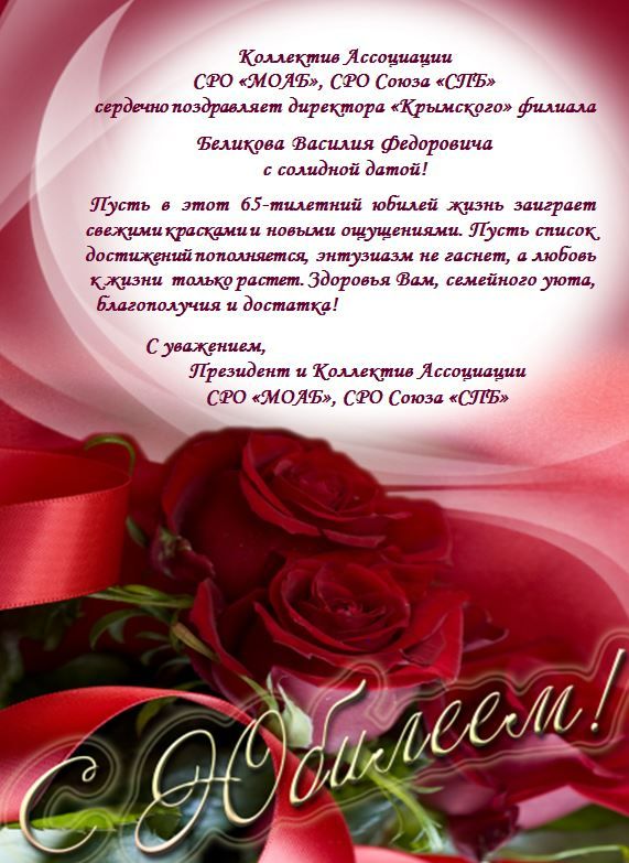Юбилей Беликова В.Ф. Поздравляем!